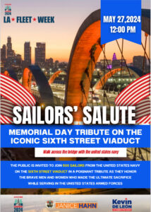 Memorial Day tribute on the iconic Sixth Street Viaduct. The public is invited to join 500 sailors from the United States Navy on the 6th Street Viaduct in a poignant tribute as they honor the brave men and women who made the ultimate sacrifice serving in the United States armed forces.
